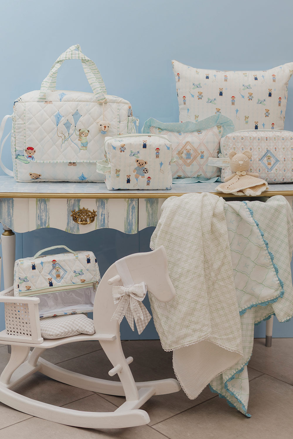 Cojín elaborado con una mezcla de drill suave al tacto, resistente y flexible (80 % poliéster, 15 % algodón, 5 % spandex). Impreso con nuestros diseños textiles exclusivos y rematado con detalles de guipur de algodón. Perfecto para aportar comodidad y un toque de color a la habitación de tu pequeño.